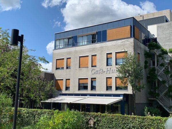 Het Gasthuis staat pal naast het AVL ziekenhuis en is te herkennen aan een gebouw met drie verdiepingen en blauwe kozijnen, precies op de hoek van het plein. Als u vanuit de parkeergarage naar het Gasthuis loopt is de ingang aan de zijkant van het pand, aan de straatzijde. Om daar te komen loopt u, komend vanuit de parkeergarage over het zebrapad niet het grote plein op naar de hoofdingang van het AVL, maar gaat u linksaf over de stoep langs de straat. De ingang van het Gasthuis treft u dan aan uw rechterzijde.