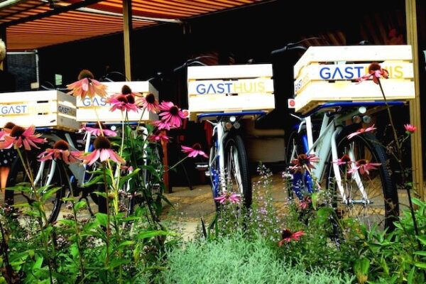 Het huis beschikt over 14 tweepersoonskamers met aparte bedden en een eigen badkamer en 1 eenpersoonskamer. U kunt zelf koken in de gemeenschappelijke keuken, een krant lezen in één van de huiskamers of in de zomer in de tuin zitten. Onze fietsen staan gratis tot uw beschikking en er is WIFI in het hele huis. Huisdieren mogen niet in het Gasthuis logeren. Uitsluitend officieel erkende hulphonden zijn welkom.